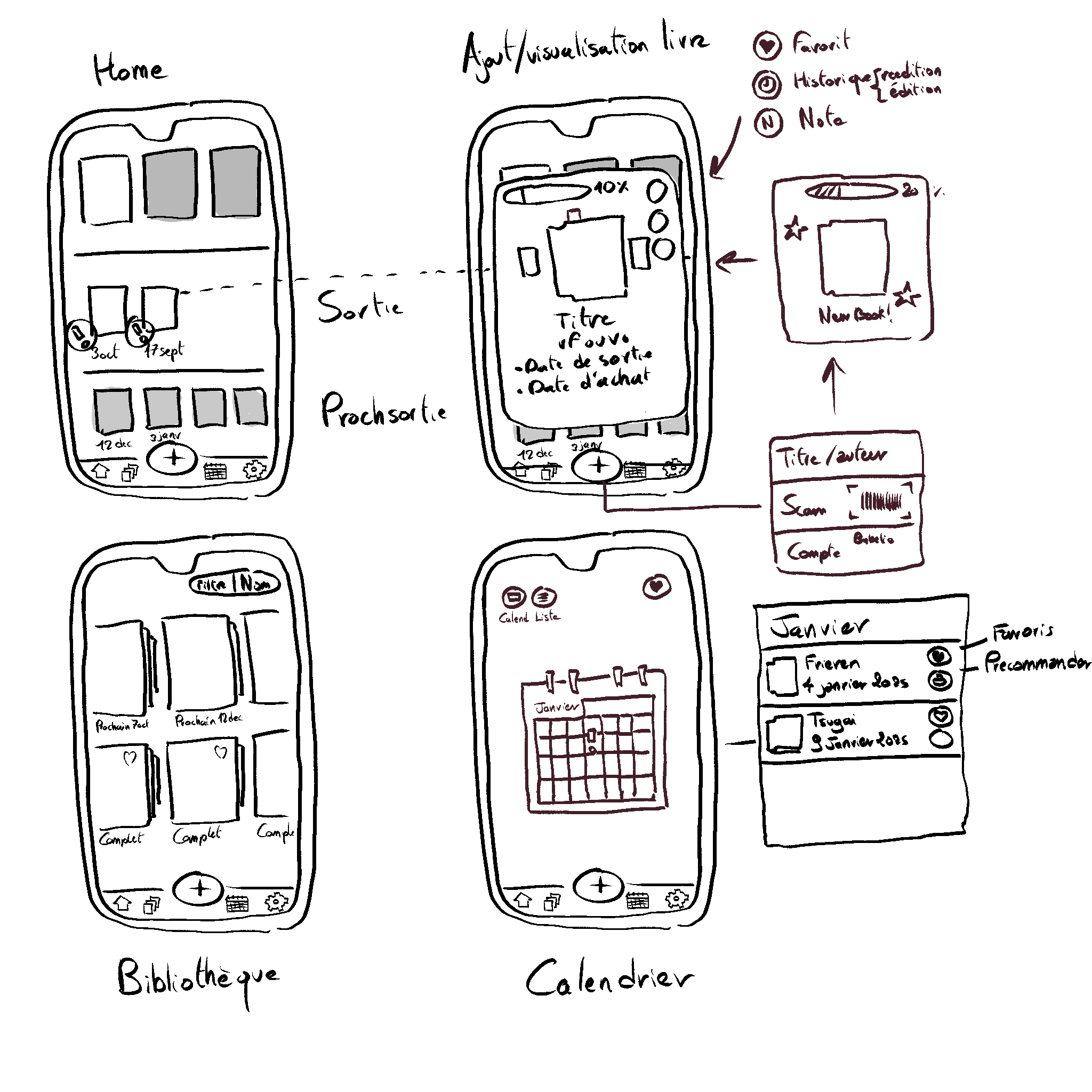 Application informant sur les prochaine sortie de nos oeuvres favorite. Après avoir enregistré sa collection via un compte externe ou en scannat ses livres, l'utilisateurs va pouvoir suivre les sorties des oeuvres qui lui manque ou des édition étrangère.